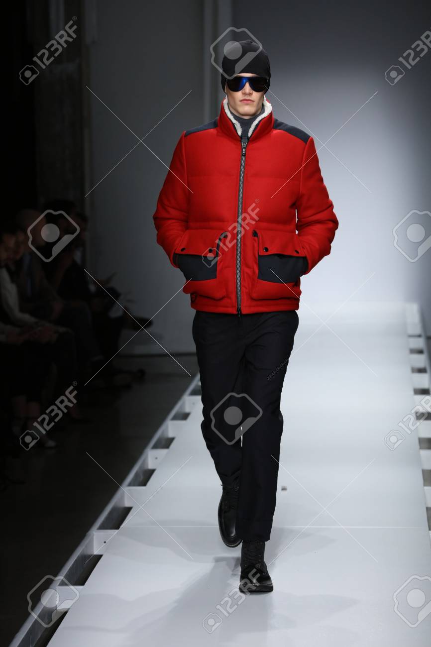 ニューヨーク ニューヨーク 2 月 2 日 ノーティカ メンズ秋 16 ファッションの滑走路ショー ニューヨーク週メンズ秋冬 16 16 年 2 月 2 日ニューヨークでの中にモデルの散歩 の写真素材 画像素材 Image